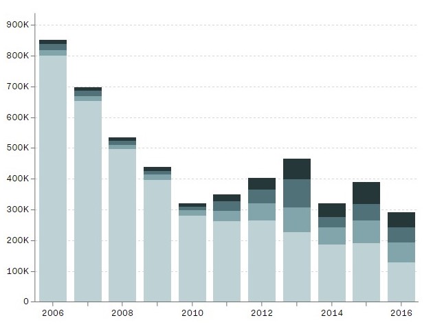 Ribuan orang melakukan imigrasi ke perbatasan Selatan AS didominasi oleh orang-orang dari Amerika Tengah yang sebagian besar berasal dari Honduras, Guatemala, Meksiko, dan El Savador meskipun jumlah imigran beberapa tahun kebelakang semakin berkurang namun masih tetap didominasi oleh keempat Negara tersebut. Hal tersebut bisa dilihat dalam tabel berikut.